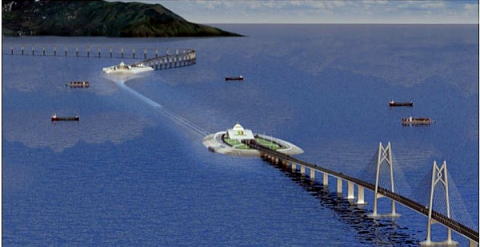 of a serious of three cable-stayed bridge, undersea tunnel, and four artificial